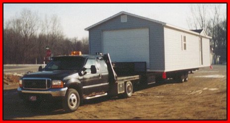 We can transport buildings up to 14' x 40' (pictured) Style: A-Frame (garage) Reference: #B102 |